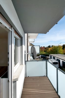 Neues modernes Balkongeländer und WPC - Terrassendielen auf dem Balkon